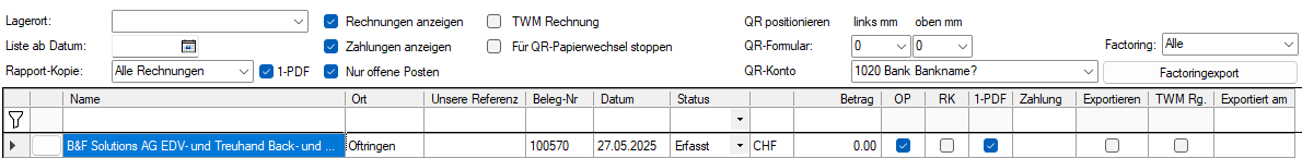 Rechnungen / Zahlungen anzeigen / Nur offenen Posten