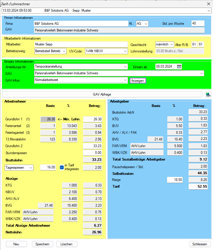 Er dient der Berechnung des Tarifs auf Basis der GAV-Abfrage, bzw. der ArbG-Selbskosten + Marge.