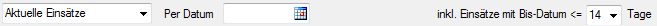 Zukünftige Einsätze, (Bei dieser Auswahl werden nur Einsätze mit 'Ab-Datum' >= 'Per Datum' angezeigt).