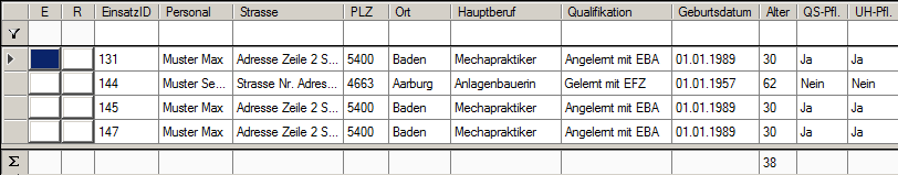 Hier werden alle Einsätze aufgelistet, welche den oben festgelegten Filter entsprechen.