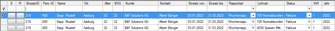 Mittels Doppelklick in der Spalte 'Name' und 'Kunde' wird der Personal-, bzw. Adresstamm geöffnet.