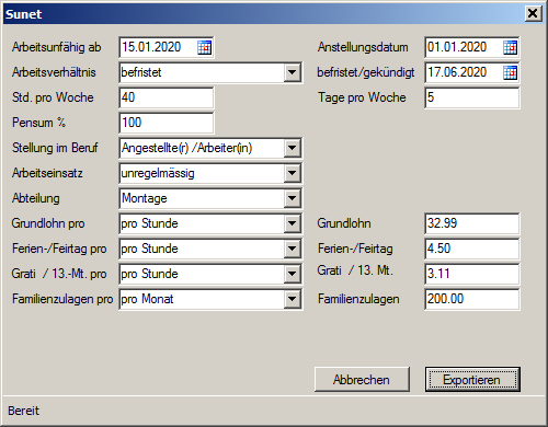 Der Grundlohn, Ferien-/Feiertags- & 13.-Monatslohn werden aus dem für dieses Datum gültigen Einsatz übernommen.