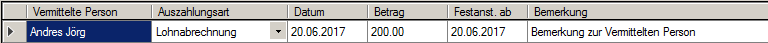 Folgende Auszahlungsdaten werden bei der Rapporterfassung für ausbezahlte Vermittlungsprämien mutiert: