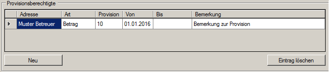 Wenn Provisionsvorgaben für den Betreuer, bzw. Agenten bestehen, werden diese Standardwerte automatisch übernommen.