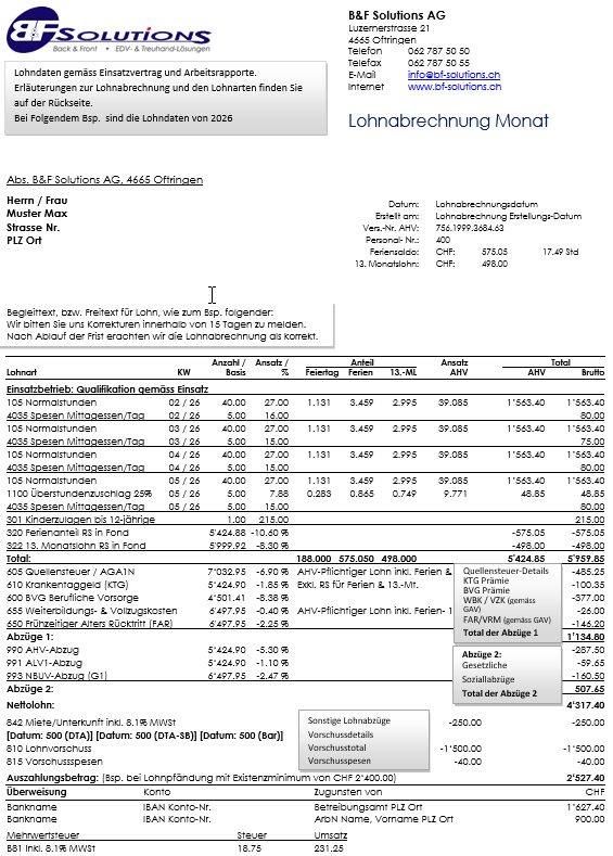 Gemäss dem GAV Personalverleih muss auf jeder Lohnabrechnung der Einsatzbetrieb und die Qualifikation gemäss GAV-Abfrage enthalten sein.
