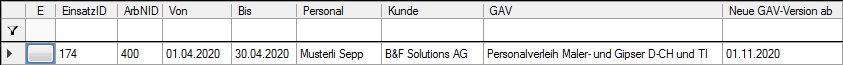Mittels Register [Einsätze] kann präventiv festgestellt werden, für welche Personen, per wann ein neuer, bzw. Folgeeinsatz erstellt werden muss. Leider können wir aus technischen Gründen nicht feststellen, was sich in der letzten GAV-Version verändert hat und ob diese Veränderung zum Erstellen eines Folgeeinsatzes verpflichtet.