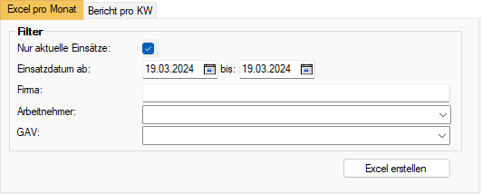 Unter diesem Register können mittels den entsprechenden Filter Excel erstellt werden.