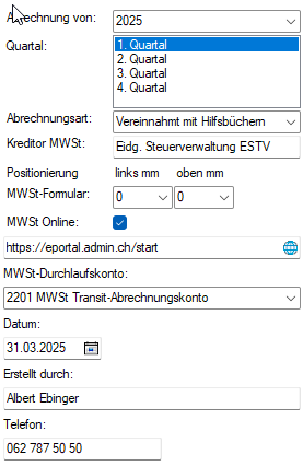 Auf der letzten Seite muss noch mittels Link 'Q?/JJJJ PDF herunterladen' die MWSt-Abrechnung gedruckt werden.