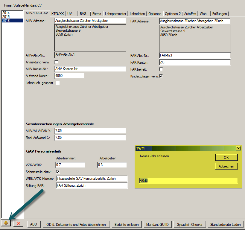 Vor der ersten Lohnabrechnung des neuen Geschäftsjahres müssen die neuen Sozialversicherungsbeiträge mutiert werden und das neue Geschäftsjahr aktiv gesetzt sein.