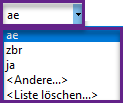 Wenn mehrere Benutzer definiert sind, können Sie über die Liste auf der linken Seite der Symbolleiste jederzeit den Benutzer wechseln. Dazu klicken Sie auf das gewünschte Login oder auf <Andere>, falls der gewünschte Benutzer noch nicht aufgeführt ist: