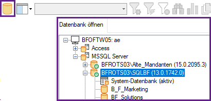 Öffnet ein Fenster, in welchem Sie die gewünschte Datenbank, bzw. den gewünschten Mandant auswählen und öffnen können.