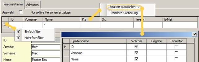 Grundeinstellungen der Suchfunktion im Personal- und Adressstamm