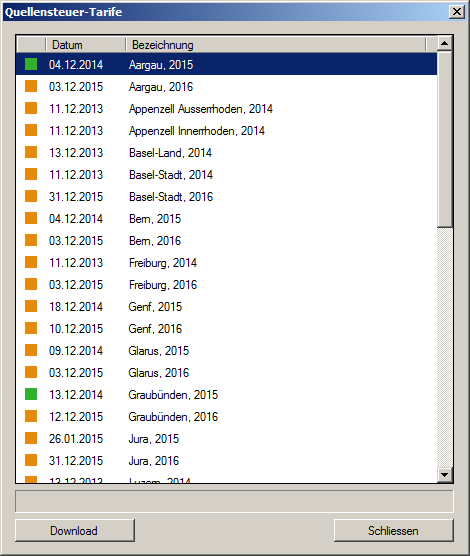 orange markiert bedeutet, dass die Daten neu sind und noch kein Download erfolgte