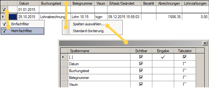 Die festgelegten Einstellungen und die Spaltenbreiten bleiben pro Benutzer gespeichert.