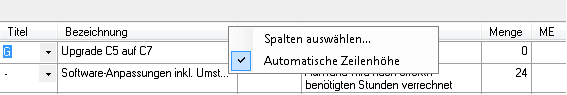 Wenn es die Inhalte der Felder erlauben, steht zusätzlich die Option Automatische Zeilenhöhe zur Auswahl.