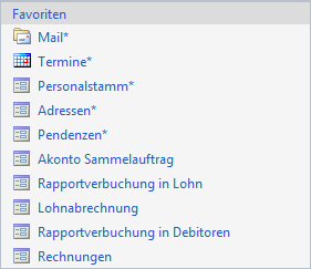 Somit sieht der Favoritenbereich nach dem einrichten wie folgt aus: