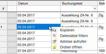 Der Inhalt der markierten Zelle wird in die Zwischenablage kopiert.